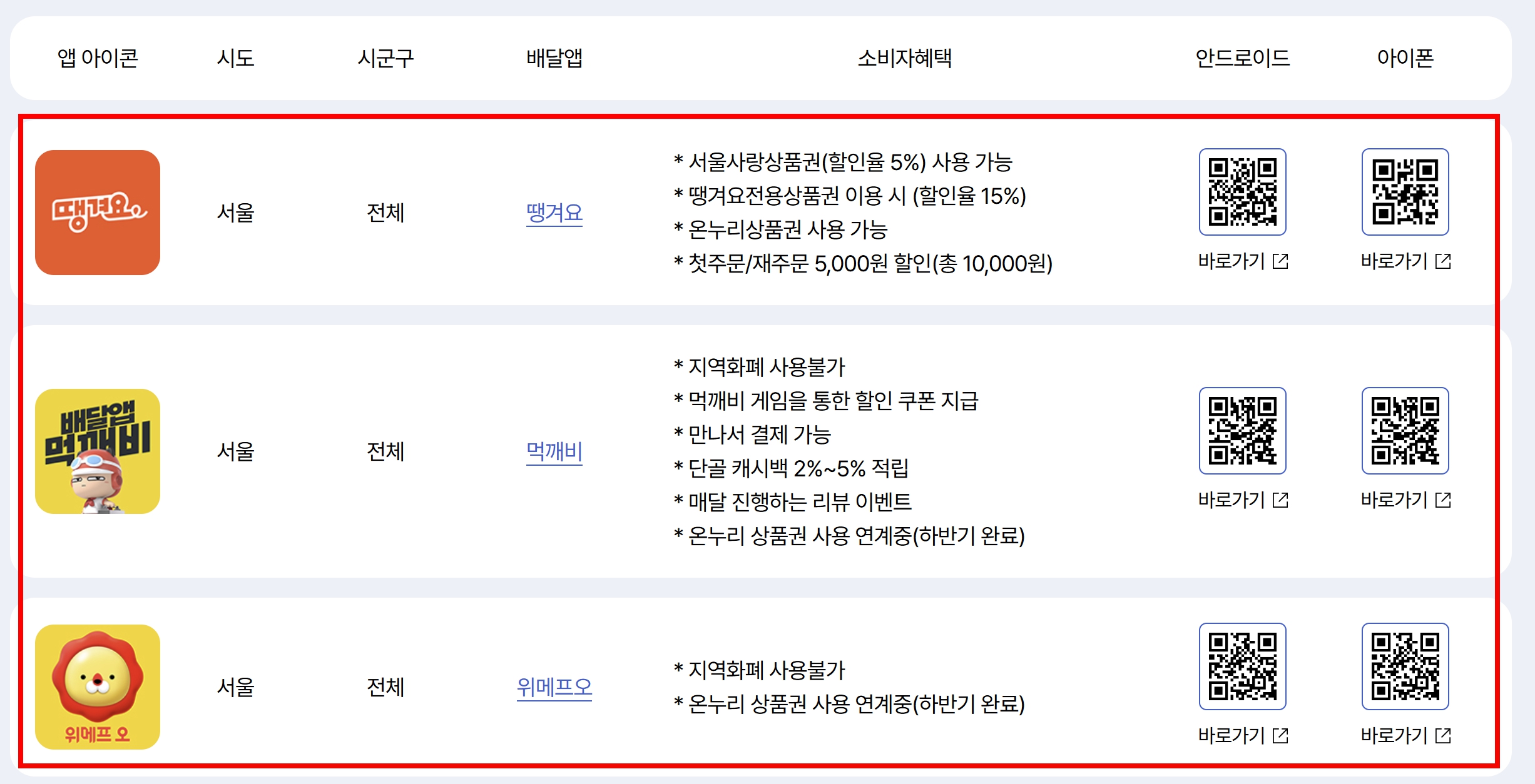 우리지역 공공배달앱 리스트가 나옵니다.